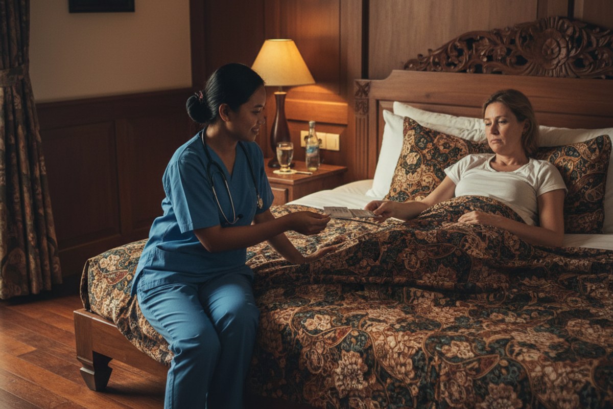 The tropical climate in Bali accelerates dehydration from diarrhea and vomiting. What might be a mildly dehydrating illness at home becomes significantly more serious when ambient temperatures are 32-35°C and humidity is high. This is one of the key reasons why getting proper medical treatment quickly is more important in Bali than in a temperate country.