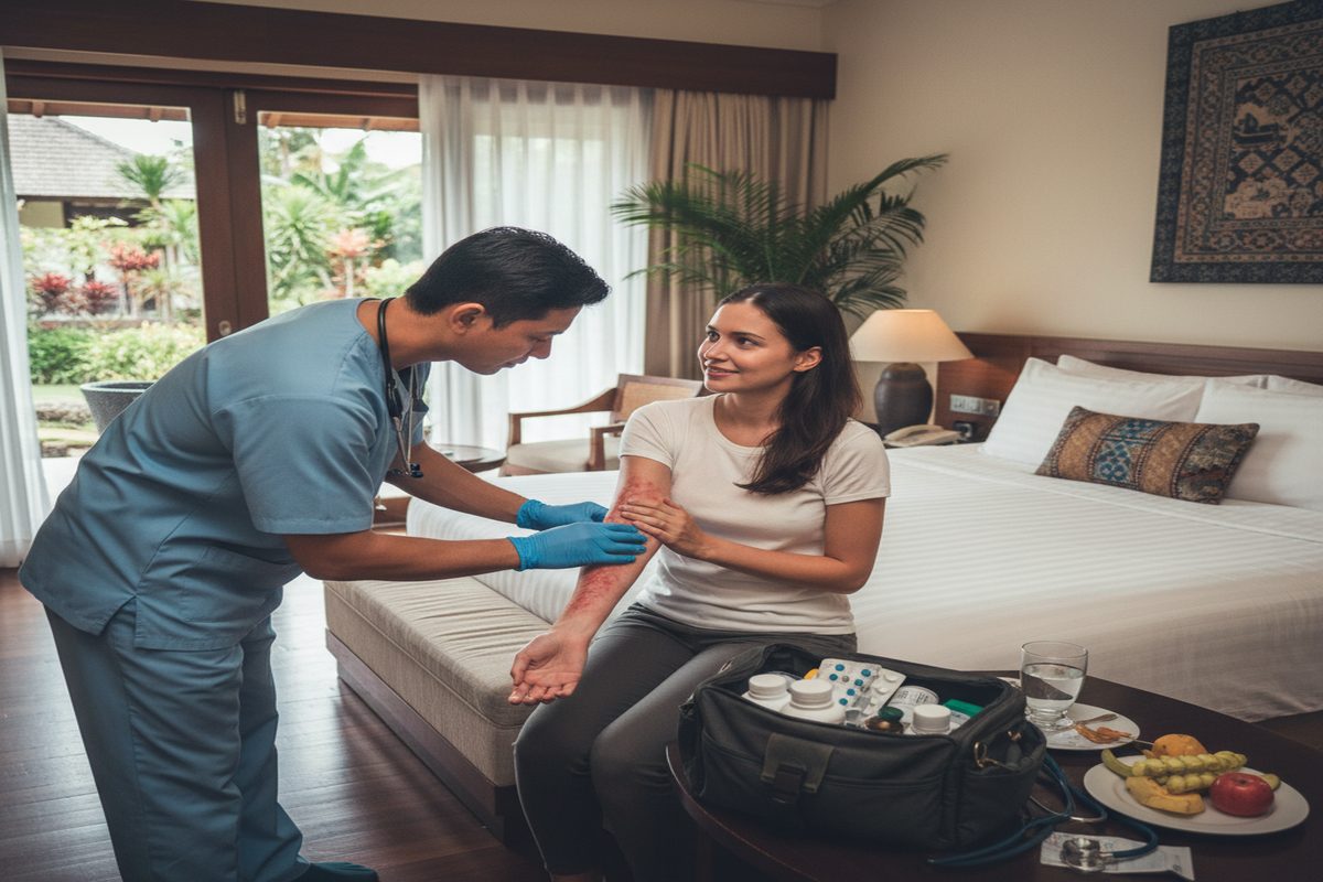 Allergic reactions can be scary when you are far from home. Our doctor arrives with antihistamines, corticosteroids, and emergency medication for severe cases.